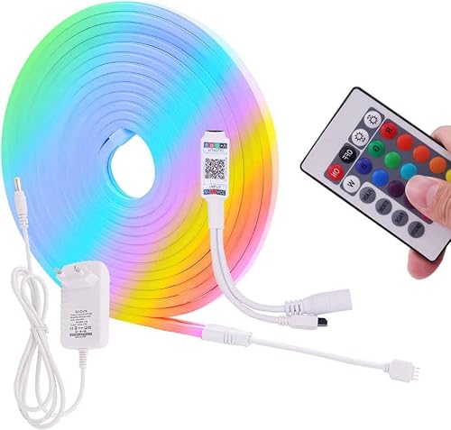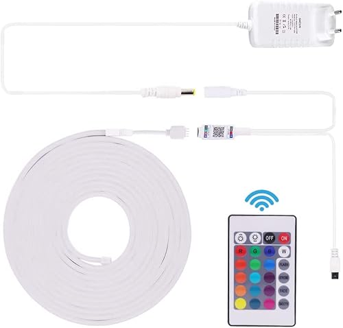 ▶ Acquista con fiducia: la confezione contiene una striscia luminosa neon RGB L5 m x L 6 mm x 12 mm, clip per cavi da 5 x 6 mm, un mini controller, un telecomando a 24 tasti e un alimentatore di rete da 12 V 4 A. La striscia luminosa al neon RGB LED e l'alimentatore di rete dispongono di una certificazione FCC, CE e RoHS.