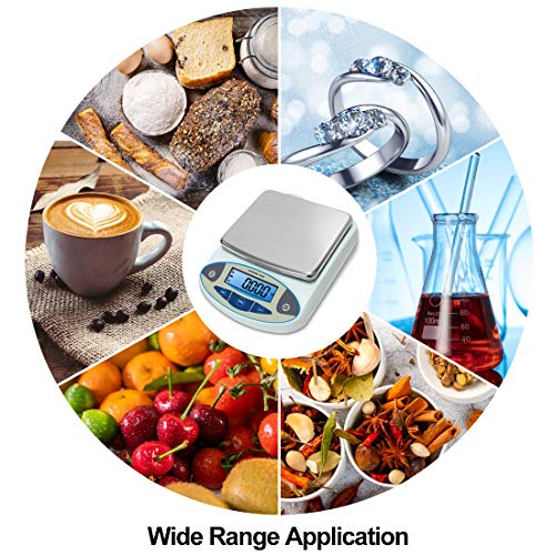 Ampia gamma e misurazione precisa. La bilancia da laboratorio Wisamic ha una capacità di pesatura massima di 5000 g con risoluzione di 0,01 g. È ideale per aiutarti a misurare gioielli, medicina e ingredienti da cucina con raffinata precisione.