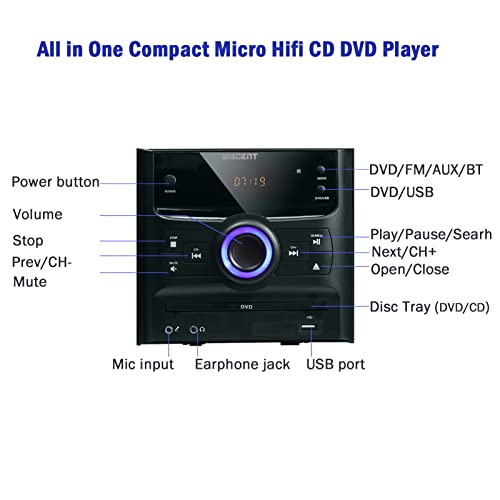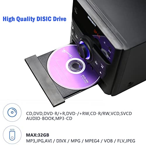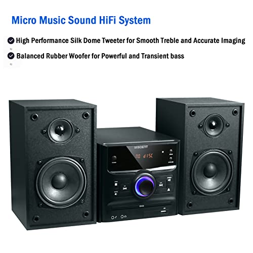 WISCENT Micro sistema compatto Micro sistema stereo HiFi con CD e Bluetooth, radio FM, CD, CD MP3, lettore DVD, USB, sistema Hi-Fi Sistema musicale