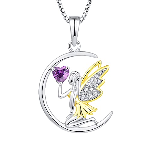 JO WISDOM Argento 925 Elfo angelo Fata su luna Ciondolo Collana per Donna con ametista