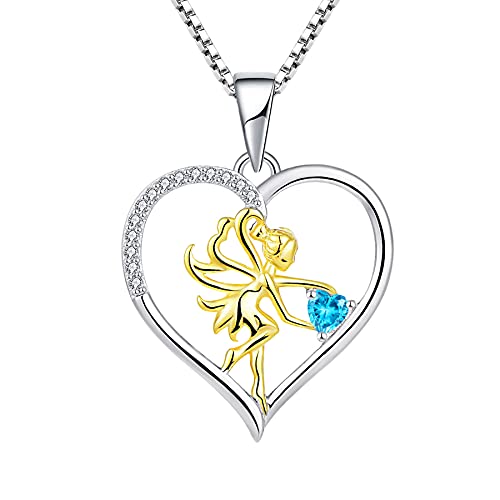 JO WISDOM Argento 925 Elfo angelo Fata Cuore Ciondolo Collana per Donna con acquamarina