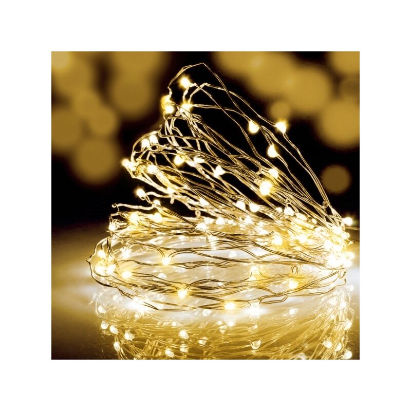 Catena luminosa di 20 microled con luce fissa o a intermittenza alimentati a batteria per uso interno. Catena luminosa di 20 microled alimentati a batteria con luce fissa o a intermittenza. Va alimentata con due batterie CR2032 ed ha un cavo con una lunghezza di 2 metri. Adatta per allestimenti e decorazioni in ambienti interni ma anche per la creazione di originali segnaposto natalizi. SPECIFICHE TECNICHE Numero di LED: 20 Frequenza: 50 Hz Colore luce: caldo Lunghezza cavo: 2 mt Grado di protezione: IP20 Peso: 0,01 g