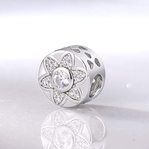 JO WISDOM Bead Charm Fiore Argento 925 Donna con 3A Zirconia Cubica per Pandora Bracciale per Donna Ragazze