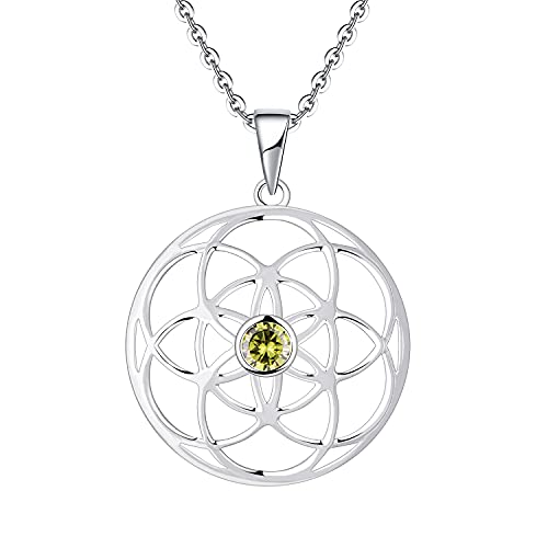 JO WISDOM Collana di Seme Della Vita Argento 925 Donna,Collana di Fiore Della Vita AAA Zirconia cubica August Birthstone Colore Peridoto