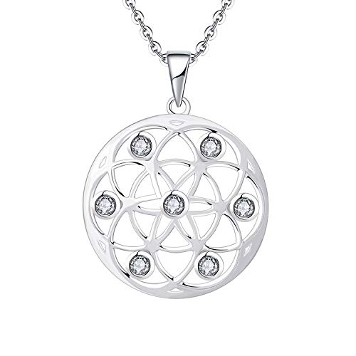 JO WISDOM Collana di Seme Della Vita Argento 925 Donna,Collana di Fiore Della Vita AAA Zirconia cubica
