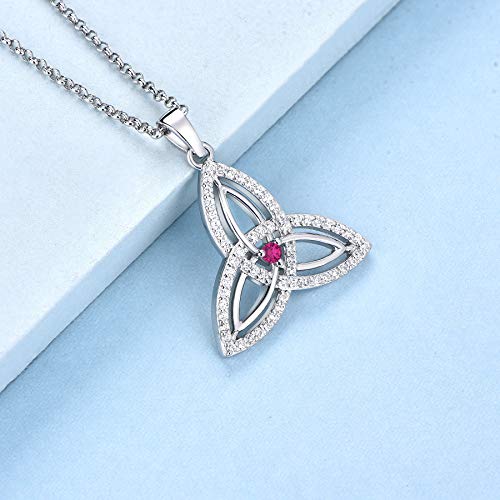 JO WISDOM Collana di Nodo Celtico Triquetra Irlandese Argento 925 Donna,Ciondolo con Catena Zirconia cubica AAA Luglio Birthstone Colore Rubino