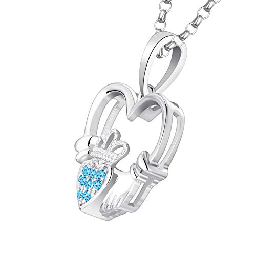 JO WISDOM Collana di Claddagh Cuore Celtico Argento 925 Donna,Ciondolo con Catena Zirconia cubica AAA Marzo Birthstone Colore Acquamarina,Collana da sposa irlandese
