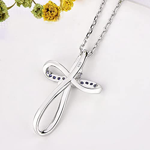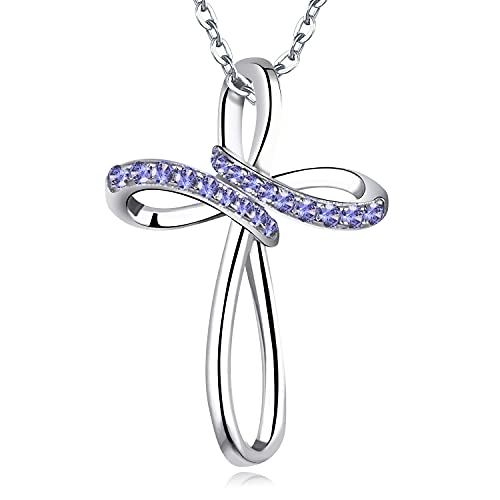 JO WISDOM Collana Croce Argento 925 Donna con Zirconia cubica Dicembre Birthstone Colore Tanzanite,Collana Crocifisso celtico con placcato in oro bianco