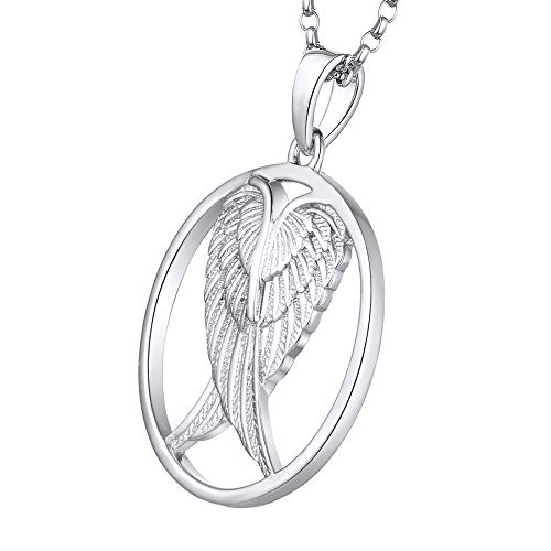JO WISDOM Collana di Custode Angelo Ali Argento 925 Donna,Ciondolo con Catena con Placcato in Oro Bianco