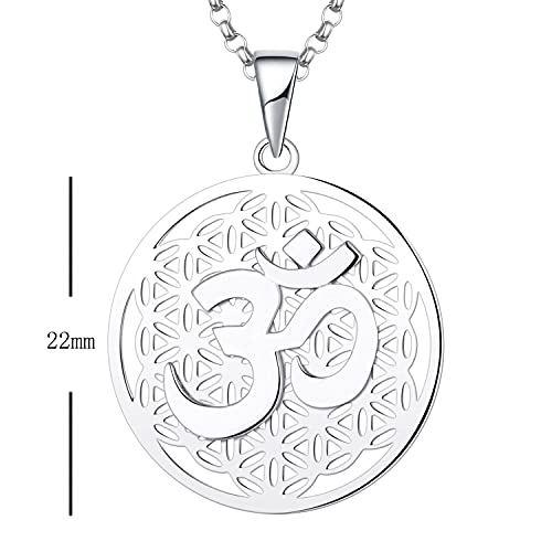 JO WISDOM Collana di Fiore della vita Argento 925 Donna,Ciondolo con Catena Yoga Indiano Aum Om Ohm