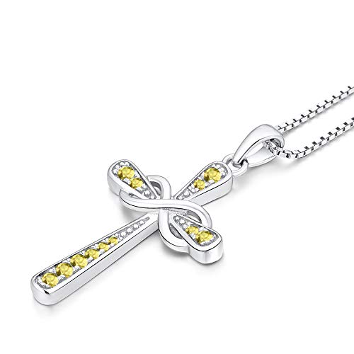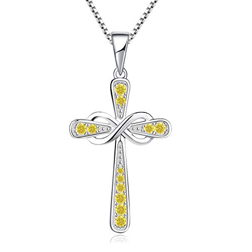 JO WISDOM Collana di Infinito Croce Argento 925 Donna,Ciondolo con Catena Crocifisso Celtico Zirconia cubica AAA Novembre Birthstone Colore citrino