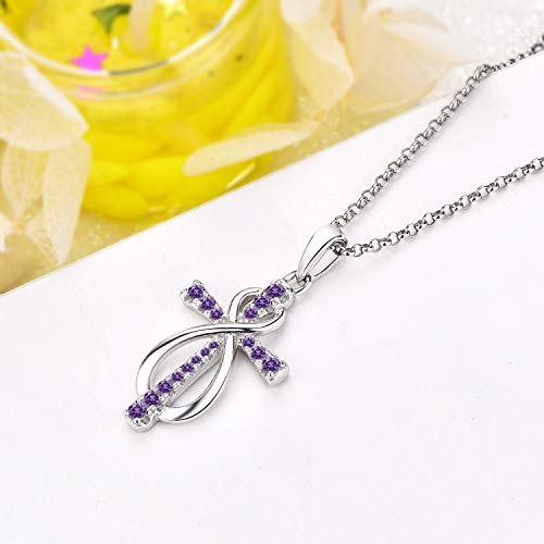 JO WISDOM Collana di Infinito Croce Argento 925 Donna,Ciondolo con Catena Crocifisso Celtico Zirconia cubica AAA Febbraio Birthstone Colore Ametista