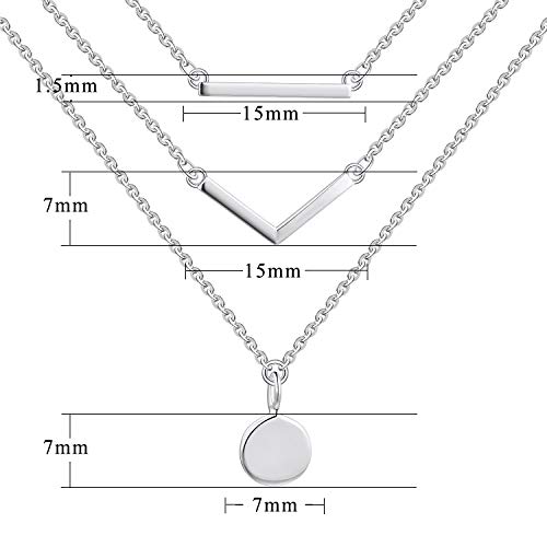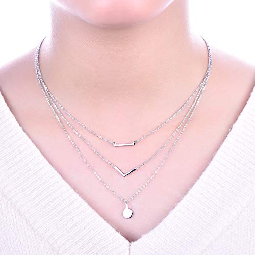 JO WISDOM Collana lunga Boho 3 multistrato Argento 925 AAA Zirconia Cubica Donna,Collana V Disc Bar con placcato oro bianco, Regalo per la mamma