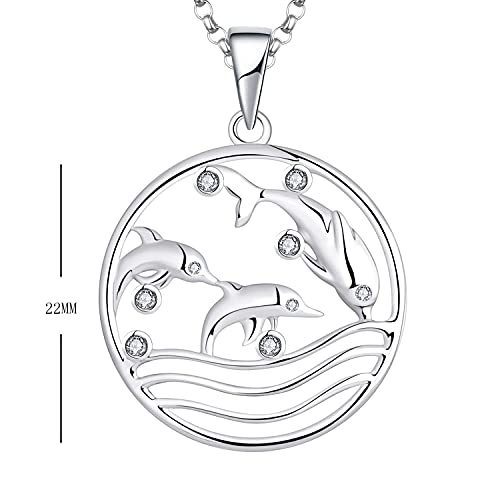 JO WISDOM Collana di Mamma Argento 925 Donna,Ciondolo con Catena Madre e Figlio Figlia/Figlio Delfino Zirconia cubica AAA,Regalo per la Mamma