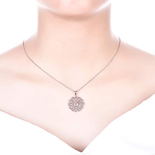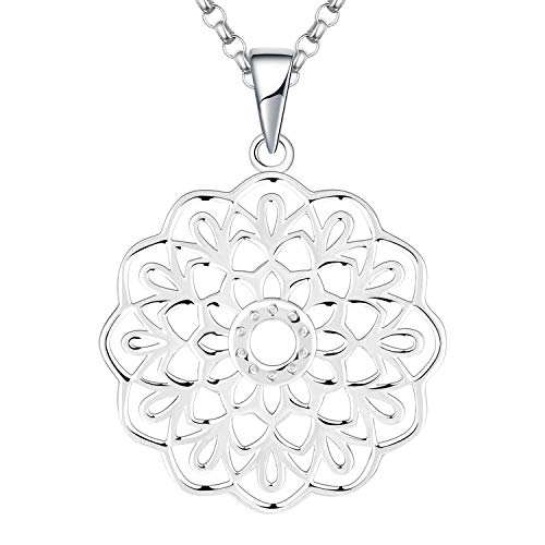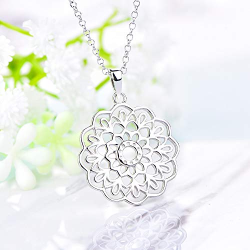 JO WISDOM Collana di Mandala Argento 925 Donna,Collana di Fiore della vita Yoga con placcato in oro bianco
