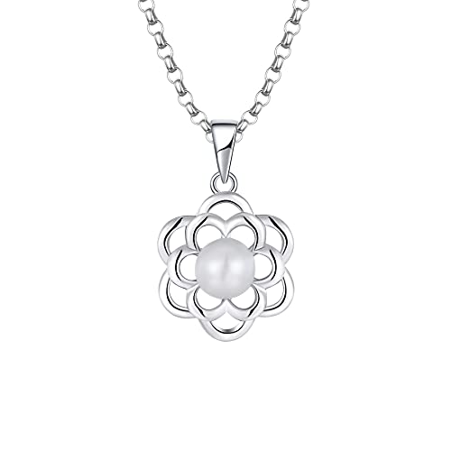JO WISDOM Collana di Perle d'acqua Dolce da 6mm Argento 925 Donna,Ciondolo con Catena Fiore Zirconia cubica 3A