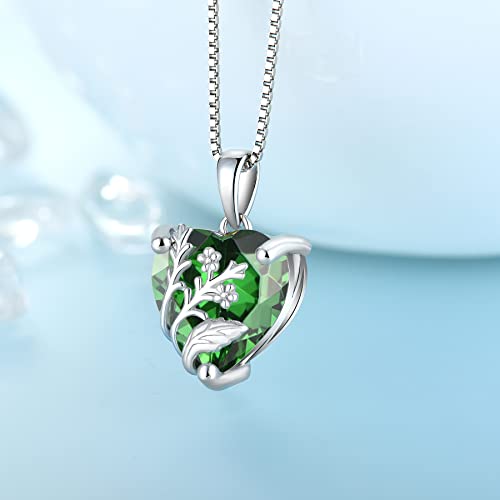 JO WISDOM Collana Verbena Cuore di Argento 925 Donna,Ciondolo con Catena Zirconia cubica 3A Può Birthstone Colore Smeraldo