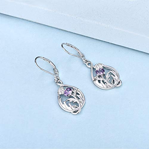 JO WISDOM Orecchini di Cardo Scozzese in Argento 925 Donna con 3A Zirconia Cubica Febbraio Birthstone Colore Ametista,Orecchini a Scozia Fiore Straniero,Gioielli per le Donne