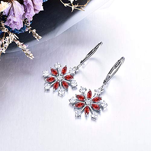 JO WISDOM Orecchini Fiocco di Neve Argento 925 Donna con AAA Zirconia Cubica Gennaio Birthstone Colore Granato