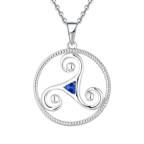 JO WISDOM Triskele Ciondolo Collana Donna in Argento 925 con 3 * 3mm zaffiro