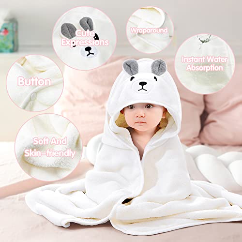 Wisdom1674 Asciugamano da bagno per bambini, super assorbente, con cappuccio, con orsetto, morbido e spesso, per il bagnetto, regalo per bambini, bianco, 80 x 80 cm