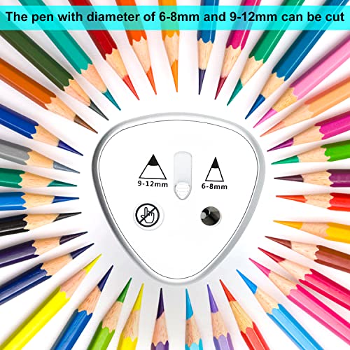 Design a Doppio Foro: Il nostro temperamatite elettrico è perfetto per matite normali e colorate, con due fori per diversi diametri di matita: 6-8 mm e 9-12 mm. Adatto a tutti i forme di matite.