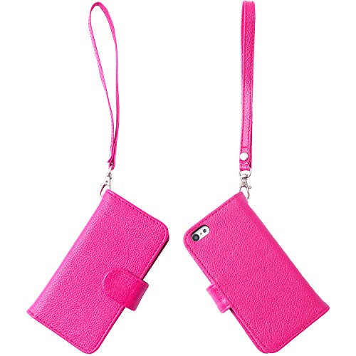 Wisdompro Cover per iPhone 5c PU Pelle 2-in-1 Custodia Protettiva Flip Folio Custodia a Portafoglio con Porta Carte di Credito Multiplo/Slot e Cordino da Polso (Rosa Caldo)