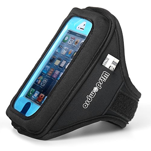 Wisdompro - Fascia da braccio per iPhone 5S/5/5C/SE e iPod Touch 5/6/7 per OtterBox Defender/Commuter Series/Lifeproof, colore: Nero