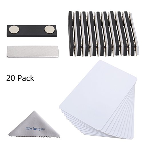 Wisdompro 20 pezzi Badge Magnetico, Targhette Magnetiche Metallo Autoadesive con 20 Badge Vuoti in PVC e 20 Potenti Magneti al Neodimio, Nome Porta Badge per Giacche, Camicie, Uniformi