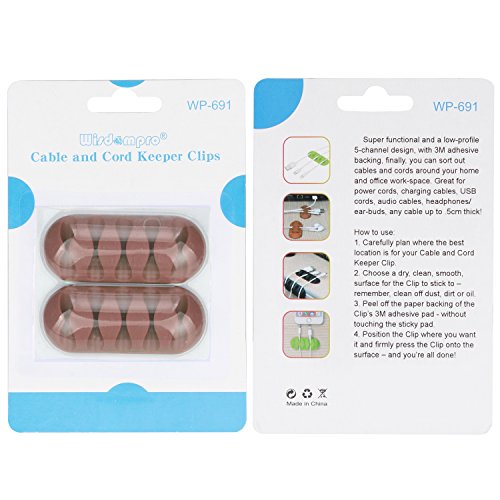 Wisdompro Supporto per clip per cavi pezzi, con retro adesivo 3M, puoi sistemare il disordine di cavi/cavi intorno alla tua casa, spazio di lavoro in ufficio - Marrone