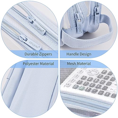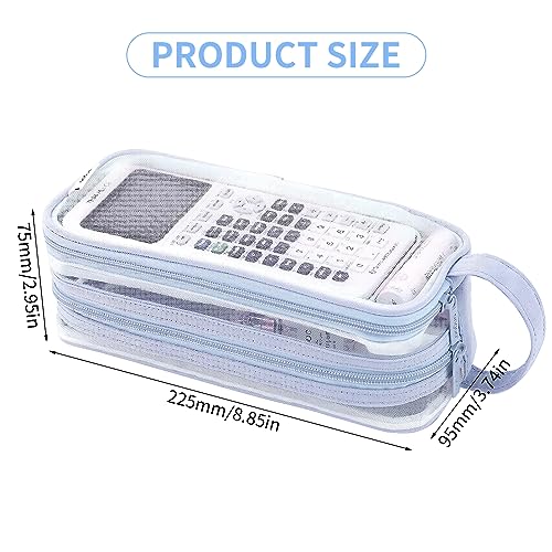Wisebom Astuccio Trasparente per Matite, Borsa per Penne in Rete con Cerniera, Astuccio Portapenne per Cancelleria con 2 Scomparti, Borsa per Trucchi, Multifunzionale Organizer per Penne (Blue)
