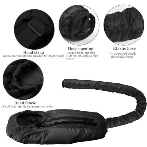 Wisebom Casco per Asciugatura Cuffia Asciugacapelli Cappuccio per Asciugacapelli Caschi Per L'asciugatura Cuffia per Asciugacapelli da Indossare Universalmente per Asciugare, Acconciare(Nero)