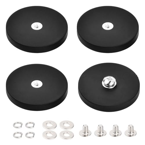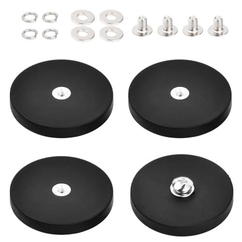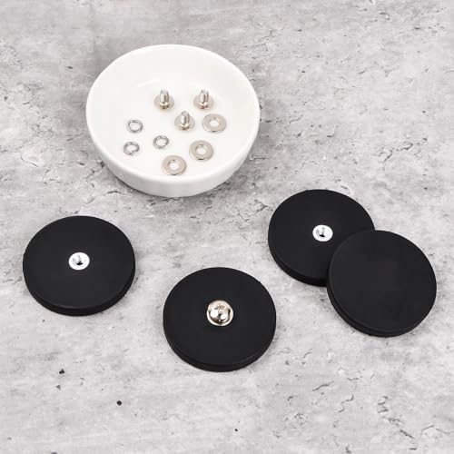 Wisebom 4 Pezzi Magneti in Gomma Rotondi, Magneti Gommati Resistenti Antiscivolo, Magneti Al Neodimio Gommati, per Strisce Luminose e Specchi Aggiuntivi per Esterni, con M4, 10 kg, 43mm