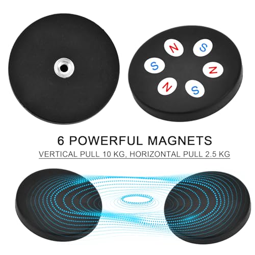 【Ventosa magnetica】: Magnete rivestito in gomma con 6 magneti al neodimio all'interno, che offre fino a 10 kg/22 libbre di adesione verticale e fino a 2,5 kg/5,5 libbre di forza di trazione orizzontale. La sua forte aspirazione magnetica consente il fissaggio sicuro degli oggetti in qualsiasi posizione desiderata.