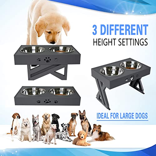 Wisedog Ciotole rialzate per cani di taglia grande Ciotola rialzata - Regolabile a 3 altezze, 2,8", 7,5" e 11,6" Supporto (Grigio)