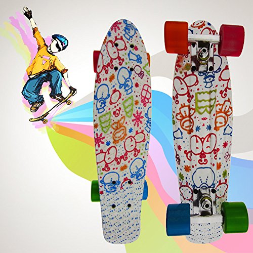 Wiseminnie Mini skateboard Cruiser da 56 cm, in plastica, in stile vintage con grafica con graffiti