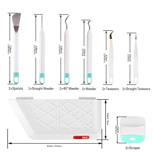 Funzioni: le erbacce sono perfette per rimuovere piccoli tagli, inclusi pezzi negativi di vinile e termoadesivo dal foglio di supporto, o per estrarre piccoli pezzi negativi da un'immagine stock di biglietti tagliati. Le pinzette possono afferrare il fascino della decorazione e consentire loro di sollevare e fissare in un unico passaggio. Il raschietto può facilmente raschiare e pulire gli scarti indesiderati dai tappetini da taglio e può rimuovere rughe e bolle dalle superfici per rendere i materiali piatti. La spatola può sollevare con precisione le immagini dal tappetino da taglio, prevenendo strappi e arricciature.