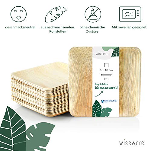 Wiseware - Piatti in foglia di palma, 25 pezzi di piatti quadrati usa e getta, 18 x 18 cm, biodegradabili, stoviglie compostabili per feste biologiche usa e getta (25, 18 x 18 cm)