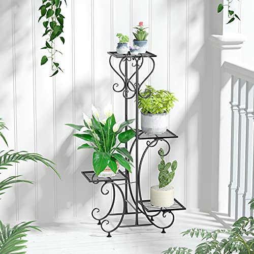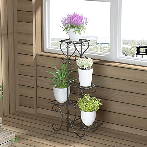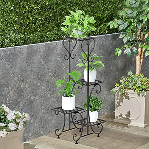 Wisfor espositore per Fiori in Ferro, scaffalatura per Interni Esterni per 4 vasi Supporto Metallico per Piante scaffale Porta Piante Nero