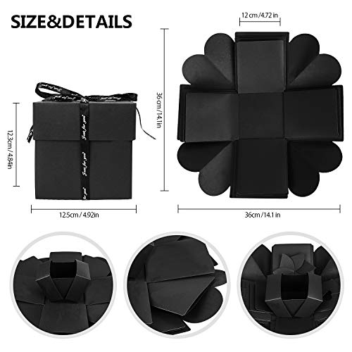 CONFEZIONE REGALO CREATIVE EXPLOSION: La scatola dell'esplosione sembra una normale scatola nera, ma quando la apri, troverai molta sorpresa, La confezione regalo con 6 facciate, 5 strati e 12 tasche. Quando è chiuso, la scatola sembra una scatola regalo. Una volta aperta, la confezione regalo esploderà, tutti i lati torneranno indietro per rivelare una grande carta a più strati e mostrare tutto l'amore che ci hai messo dentro.
