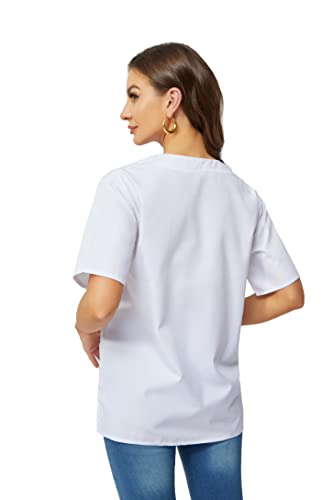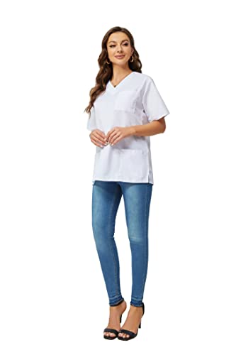 WISFREAST Uniforme Medica Camice Unisex - Divisa da Lavoro - Uniformi Casacca Sanitarie Donna Uomo, Tessuto di Alta qualità, Opaco, Bianco, XL