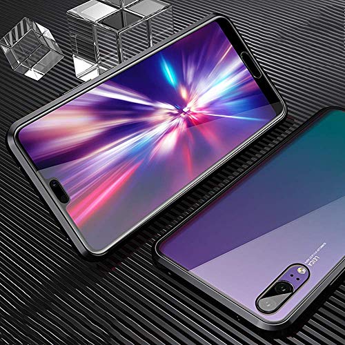 Wishcover Custodia Magnetico per Huawei P20,P20 Cover 360 Gradi Full Body Trasparente Vetro Temperato+Alluminio Metal Bumper con Adsorbimento Magnetico Copertura Case per Huawei P20