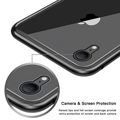 ①Ultra leggera e sottile, fatta di qualità vetro temperato e alluminio metallo bumper, Perfetta vestibilita per iPhone XR
