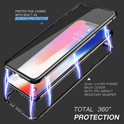 Wishcover Custodia Magnetico per iPhone XR,iPhone XR Cover 360 Gradi Full Body Trasparente Vetro Temperato+Alluminio Metal Bumper con Adsorbimento Magnetico Copertura Case per iPhone XR