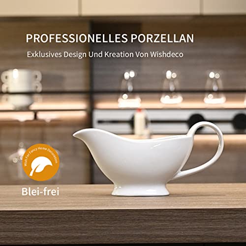 WishDeco Salsiera 200ml, Salsiera Piccola in Porcellana, Salsiera Bianca con Manico per Salsa, Condimenti per Insalata, Panna