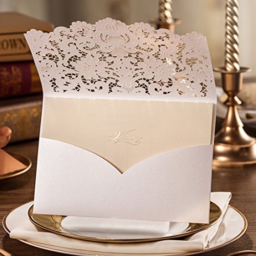 WISHMADE 20pcs taglio Laser inviti da matrimonio, invito stampabile bianco con pizzo floreale per l'impegno nuziale nuziale Anniversario della doccia con buste (20 pezzi)