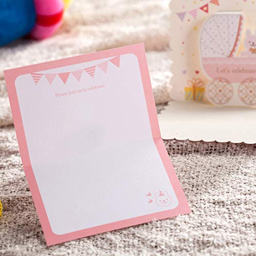 WISHMADE Carte Invito per Ragazza e Baby Shower compleanno Battesimo Inviti con Rosa Busta, Rosa, 20 pezzi