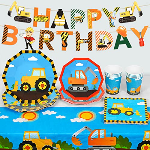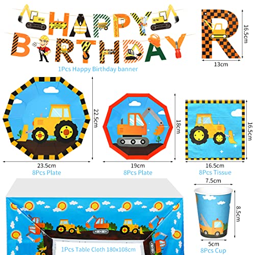 Wishstar Escavatore Stoviglie per Feste di Compleanno, Costruzione di Autocarri con Cassone Ribaltabile, Stoviglie Decorazione Set, Bicchieri di Carta, Piatti di Carta, tovaglia per Bambini,8 Ospiti