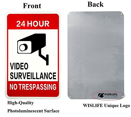 Wislife videosorveglianza Sign - 40 mil in alluminio antiruggine glow-in-the-dark segni, home Business 24 ore, sicurezza no Trespassing Sign 25,4 x 35,6 cm