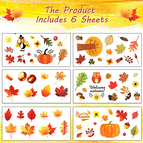 Il Pacchetto Include: Riceverai 6 adesivi per finestre del Ringraziamento. 6 diverse serie di stili, molto vivide e luminose per catturare il vero significato dell'autunno e del ringraziamento per le tue esigenze.